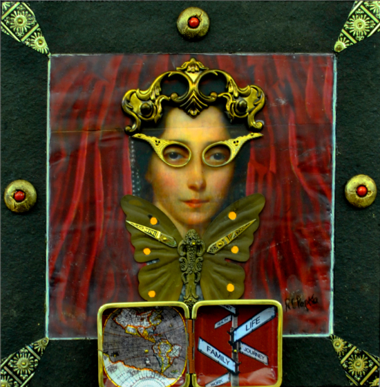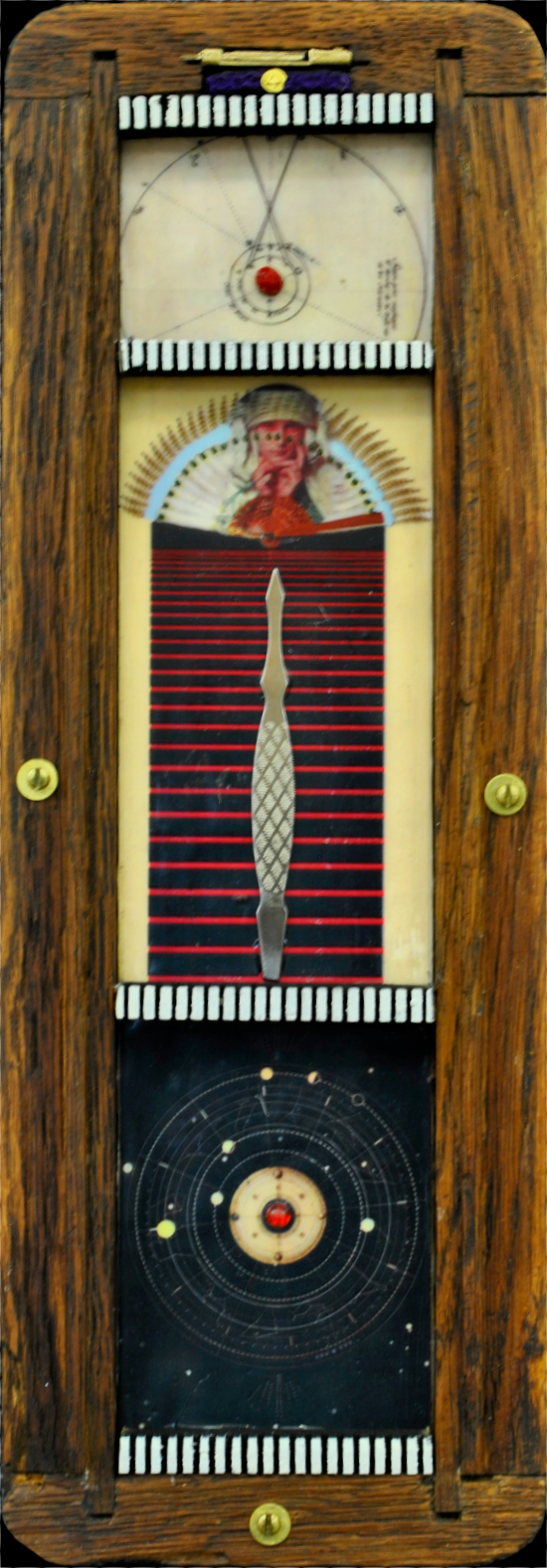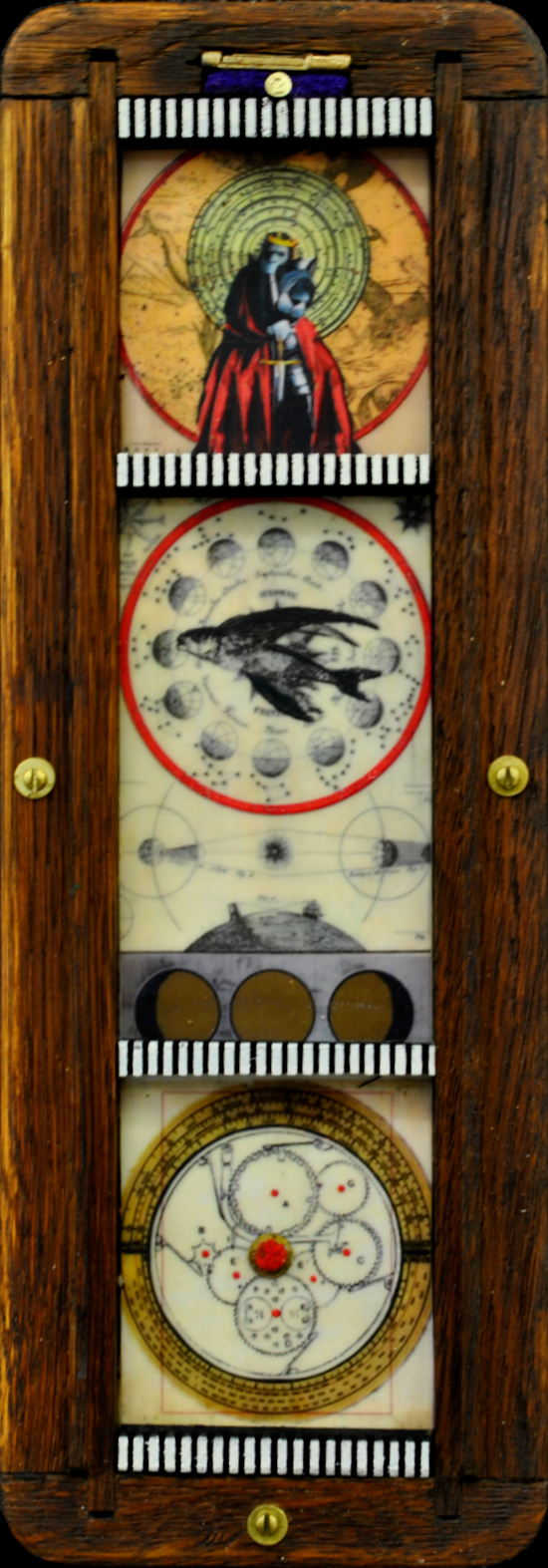 ![]() Mona Framed and Bedazzled Herself for Induction into the Red Hat Society Wax, resin, tar paper, images, vintage frame, brass pieces repurposed from hinges, sconces, napkin holders, drawer pulls on a wood panel 24 x 18 x 3 Available from the Artist ![]() ![]() Celestial Nomad Lodestar wax, resin, images, found and repurposed objects in sewing machine drawer frames 15 x 5 x 1 Available from the ArtistCw ![]() ![]() ![]() ![]() ![]() I II III IV V Library of Curiosities I - V wax, resin, images, found and repurposed objects in sewing machine drawer frames 15 x 5 x 1 Available from the ArtistC ![]() And So It Was Written - In Time Past Wax, resin, images, clock and typewriter parts, repurposed table knife handkes, vintage cigar press part, hors d'oeuvres picks, configured writing pens, constructed written scroll in a vintage clock case 21 x 12 x 4 Available from the Artist ![]() Observation + Imagination Wax, resin, images,papers, decorative eyeball in an egg holder, optician’s testing glass, mechanical drawing/drafting tool, computer parts, fabricated object of interest and seltzer bottle spritzer in a shadow box 19 x 13 x 2.5 Available from the Artist ![]() Math and Geometry - Pythagorean Shell Game Wax, resin, papers, shells, spider crab carapace, hat hooks, repurposed metal pieces, domino parts, wood organ part, outside caliper tool in a wood shadow box. 16 x 11 x 2.5 Available from the Artist ![]() Math and Geometry - Fibonacci Numbers Game Wax, resin, papers, shells, pigment, paper images, shells, metal ruler, repurposed metal and wood pieces, brass doorknob finial in a wood shadow box 17 x 12 x 3 Available from the Artist ![]() Soul in Transit Wax, resin, images, piano and organ parts, vintage wood table-pan, optometrist trial lenses, microscope slide box parts, brass angel, repurposed jewelry pieces in a vintage clock case 23 x 15 x 6 Available from the Artist ![]() Stairway to Heaven Wax, resin, images, piano parts, vintage brass kerosine lamp part, vintage brass angel from a Brugges Belgium bell, brass door knobs, repurposed brass pieces from a decorative drawer pull, light switch cover and door lock, repurposed jewelry pieces in a vintage clock case 30 x 13 x 6 Available from the Artist ![]() The Magic Music Box - Time for a Little Tune wax, resin, images, vintage piano keys, formulated music box with typewriter mechanism clock hands, wooden piano parts and brass drawer pull in a shadow box 16 x 5 x 4 Available from the Artist ![]() The Magic of Book -Takes Time to Write a Story wax, resin, images, opened book, clock parts, typewrited pieces and fomulated vintage ink pen and brass drawer pull in a shadow box 16 x 5 x 4 Available from the Artist ![]() Inside the Land of Imagination wax, resin, images, opened book, vintage key, brass pieces & drawer pull in a shadow box 16 x 5 x 4 Available from the Artist ![]() Homage to Organ and Piano wax, resin, images, vintage piano keys, organ stops, piano hammers and foot pedal, various piano and organ parts and brass drawer pull in a shadow box 16 x 5 x 4 Available from the Artist ![]() Reliquary IV wax, resin, images, vintage microscope slide box with miniature vials, various brass pieces, and brass drawer pull and knob in a shadow box 16 x 5 x 4 Available from the Artist ![]() ![]() Ptolemy Explores Venus wax, resin, images, and repurposed objects in vintage sewing machine drawer 19 x 6 x 4 Available from the Artist ![]() The Eyes of Librarians Keep Watch Over Old Books wax, resin, images, vintage eyeglasses, book cover, formulated book, typewriter piece mechanism from vintage fishing reel,and repurposed objects in a shadow box 17 x 12 x 4 Available from the Artist ![]() Cabinet of Curiosities III images, vintage microscope slide boxes, vintage flashlilght, ceramic wing, old key and watch part, metal drawer pull, hors d'oeuvres picks, and repurposed objects in a shadow box 18 x 12 x 4 Available from the Artist ![]() Time Traveller wax, resin, images, vintage music box mechanism, various clock parts, mechanism from vintage fishing reel,and repurposed objects in a shadow box 20 x 12 x 4 Available from the Artist ![]() As Deemed by the Pharoahess wax, resin, images, vintage typewriter mechanism, pewter salt and pepper shakers, small boxes, brass rams heads, table knife handles, and repurposed objects in a shadow box 28 x 14 x 4 Available from the Artist ![]() Vitruvian Woman - Sacred Female Geometry wax, resin, images, vintage brass finials, vintage brass &glass door knob, brass drawer plate, small box, repurposed jewelry in a shadow box 18 x 11 x 3 Available from the Artist ![]() The Alchemist's Laboratory wax, resin, images, thermometer, vintage brass mini weighing weights, vintage brass doorknob, brass wall switch plate, brass buttons, watchmaker's wood box and vials, & copper & tin coils in a shadow box 18 x 11 x 3 Available from the Artist ![]() Cabinet of Curiosities ![]() Temple for the Mind II ![]() Watching the Sun Roll Down the Curve of the Afternoon wax, resin, images, wood (part of a chair, toy block, gear), metal caster, and brass drawer pull, chain, disc and repurposed objects in a shadow box 17 x 11 x 3 Available from the Artist ![]() Limbo - Plight of the Innocents wax, resin, images, vintage finial and drawer pulls, fork, crucifix, keyholes and keys, repurposed jewelry in a shadow box 19 x 13 x 3 Available from the Artist ![]() Vitruvian Woman - Where Do I Stand in Today's World? wax, resin, images, vintage brass organ part, vintage brass &glass door knob, keys, small decortive hooks, repurposed jewelry in a shadow box 18 x 13 x 4 Available from the Artist ![]() ![]() Cycle of Time - Cycle of