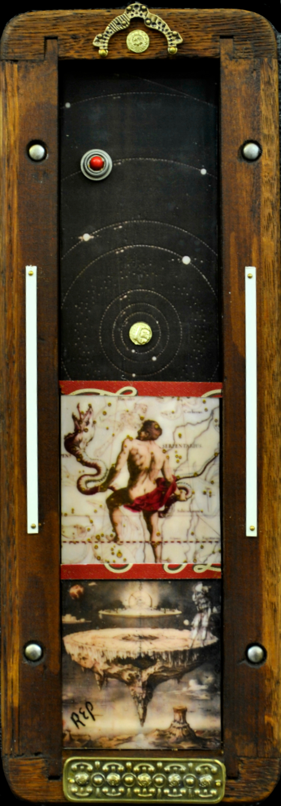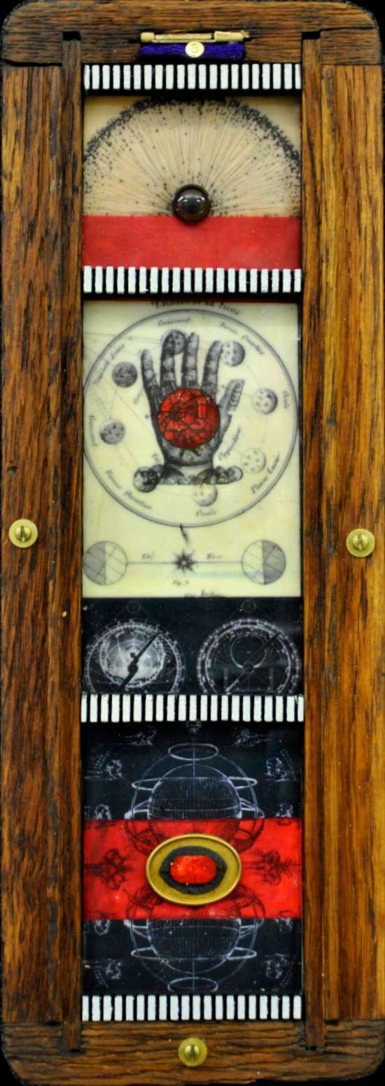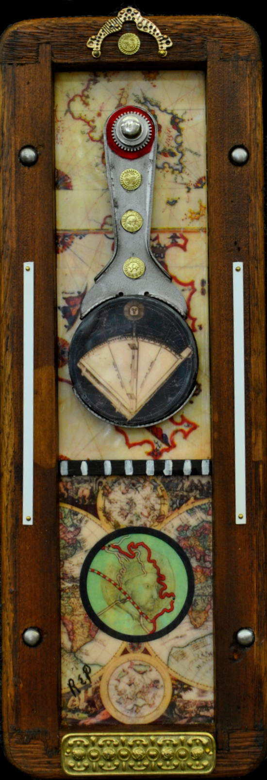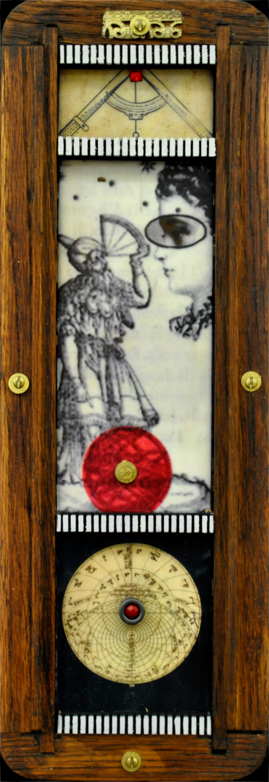 ![]() Mona Framed and Bedazzled Herself for Induction into the Red Hat Society Wax, resin, tar paper, images, vintage frame, brass pieces repurposed from hinges, sconces, napkin holders, drawer pulls on a wood panel 24 x 18 x 3 Available from the Artist ![]() ![]() Celestial Nomad Lodestar wax, resin, images, found and repurposed objects in sewing machine drawer frames 15 x 5 x 1 Available from the ArtistCw ![]() ![]() ![]() ![]() ![]() I II III IV V Library of Curiosities I - V wax, resin, images, found and repurposed objects in sewing machine drawer frames 15 x 5 x 1 Available from the ArtistC ![]() And So It Was Written - In Time Past Wax, resin, images, clock and typewriter parts, repurposed table knife handkes, vintage cigar press part, hors d'oeuvres picks, configured writing pens, constructed written scroll in a vintage clock case 21 x 12 x 4 Available from the Artist ![]() Observation + Imagination Wax, resin, images,papers, decorative eyeball in an egg holder, optician’s testing glass, mechanical drawing/drafting tool, computer parts, fabricated object of interest and seltzer bottle spritzer in a shadow box 19 x 13 x 2.5 Available from the Artist ![]() Math and Geometry - Pythagorean Shell Game Wax, resin, papers, shells, spider crab carapace, hat hooks, repurposed metal pieces, domino parts, wood organ part, outside caliper tool in a wood shadow box. 16 x 11 x 2.5 Available from the Artist ![]() Math and Geometry - Fibonacci Numbers Game Wax, resin, papers, shells, pigment, paper images, shells, metal ruler, repurposed metal and wood pieces, brass doorknob finial in a wood shadow box 17 x 12 x 3 Available from the Artist ![]() Soul in Transit Wax, resin, images, piano and organ parts, vintage wood table-pan, optometrist trial lenses, microscope slide box parts, brass angel, repurposed jewelry pieces in a vintage clock case 23 x 15 x 6 Available from the Artist ![]() Stairway to Heaven Wax, resin, images, piano parts, vintage brass kerosine lamp part, vintage brass angel from a Brugges Belgium bell, brass door knobs, repurposed brass pieces from a decorative drawer pull, light switch cover and door lock, repurposed jewelry pieces in a vintage clock case 30 x 13 x 6 Available from the Artist ![]() The Magic Music Box - Time for a Little Tune wax, resin, images, vintage piano keys, formulated music box with typewriter mechanism clock hands, wooden piano parts and brass drawer pull in a shadow box 16 x 5 x 4 Available from the Artist ![]() The Magic of Book -Takes Time to Write a Story wax, resin, images, opened book, clock parts, typewrited pieces and fomulated vintage ink pen and brass drawer pull in a shadow box 16 x 5 x 4 Available from the Artist ![]() Inside the Land of Imagination wax, resin, images, opened book, vintage key, brass pieces & drawer pull in a shadow box 16 x 5 x 4 Available from the Artist ![]() Homage to Organ and Piano wax, resin, images, vintage piano keys, organ stops, piano hammers and foot pedal, various piano and organ parts and brass drawer pull in a shadow box 16 x 5 x 4 Available from the Artist ![]() Reliquary IV wax, resin, images, vintage microscope slide box with miniature vials, various brass pieces, and brass drawer pull and knob in a shadow box 16 x 5 x 4 Available from the Artist ![]() ![]() Ptolemy Explores Venus wax, resin, images, and repurposed objects in vintage sewing machine drawer 19 x 6 x 4 Available from the Artist ![]() The Eyes of Librarians Keep Watch Over Old Books wax, resin, images, vintage eyeglasses, book cover, formulated book, typewriter piece mechanism from vintage fishing reel,and repurposed objects in a shadow box 17 x 12 x 4 Available from the Artist ![]() Cabinet of Curiosities III images, vintage microscope slide boxes, vintage flashlilght, ceramic wing, old key and watch part, metal drawer pull, hors d'oeuvres picks, and repurposed objects in a shadow box 18 x 12 x 4 Available from the Artist ![]() Time Traveller wax, resin, images, vintage music box mechanism, various clock parts, mechanism from vintage fishing reel,and repurposed objects in a shadow box 20 x 12 x 4 Available from the Artist ![]() As Deemed by the Pharoahess wax, resin, images, vintage typewriter mechanism, pewter salt and pepper shakers, small boxes, brass rams heads, table knife handles, and repurposed objects in a shadow box 28 x 14 x 4 Available from the Artist ![]() Vitruvian Woman - Sacred Female Geometry wax, resin, images, vintage brass finials, vintage brass &glass door knob, brass drawer plate, small box, repurposed jewelry in a shadow box 18 x 11 x 3 Available from the Artist ![]() The Alchemist's Laboratory wax, resin, images, thermometer, vintage brass mini weighing weights, vintage brass doorknob, brass wall switch plate, brass buttons, watchmaker's wood box and vials, & copper & tin coils in a shadow box 18 x 11 x 3 Available from the Artist ![]() Cabinet of Curiosities ![]() Temple for the Mind II ![]() Watching the Sun Roll Down the Curve of the Afternoon wax, resin, images, wood (part of a chair, toy block, gear), metal caster, and brass drawer pull, chain, disc and repurposed objects in a shadow box 17 x 11 x 3 Available from the Artist ![]() Limbo - Plight of the Innocents wax, resin, images, vintage finial and drawer pulls, fork, crucifix, keyholes and keys, repurposed jewelry in a shadow box 19 x 13 x 3 Available from the Artist ![]() Vitruvian Woman - Where Do I Stand in Today's World? wax, resin, images, vintage brass organ part, vintage brass &glass door knob, keys, small decortive hooks, repurposed jewelry in a shadow box 18 x 13 x 4 Available from the Artist ![]() ![]() Cycle of Time - Cycle of